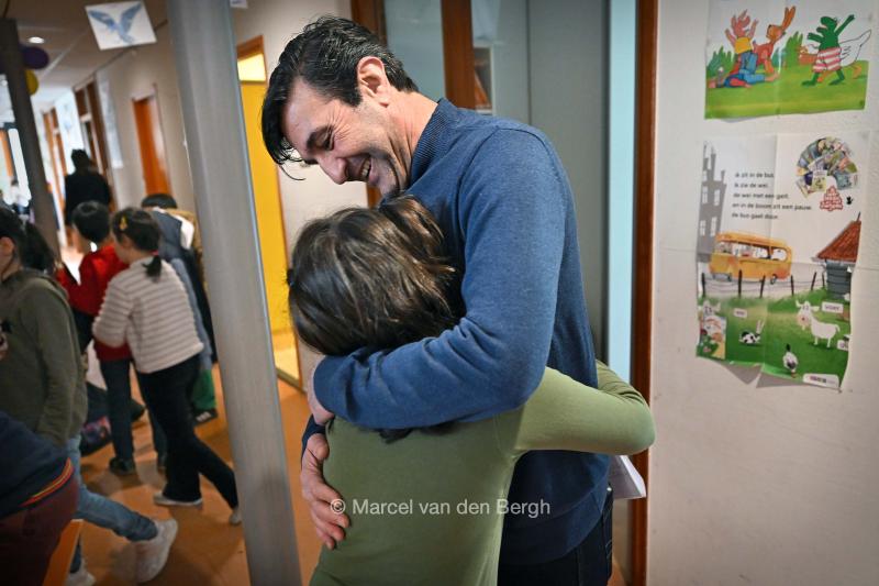 27-3-2026, Nederland, Noordwijkerhout Syrische vluchteling Diyaa (met verblijfstatus) haalt zijn dochter van school. (niet voor Trouw, Parool, AD en NRC)