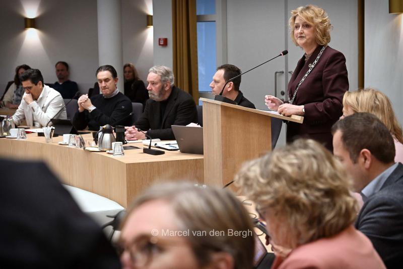 Burgemeester Melissant-Briene tijdens de vergadering.