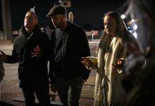 31-10-2025, Nederland, Kampen Gebedsgenezer Jelthe Kloens leidt de geloofsbeweging Schud de Plaatsen. Op straat in Kampen verkondigen zijn volgers het evangelie. Enkele mannen op een terras worden aangesproken. foto Marcel van den Bergh (niet voor Trouw, Parool, AD en NRC)