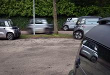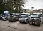 30-3-2026, Nederland, Laren Veel leerlingen van de International School Laren, Laar & Berg, hebben een Biro. Ze staan veelal geparkeerd op de straat voor de school omdat ze niet op de schoolparkeerplaats mogen staan. Een mini rijdt voorbij. (niet voor Trouw, Parool, AD en NRC)