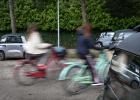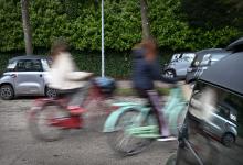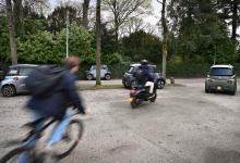 30-3-2026, Nederland, Laren Veel leerlingen van de International School Laren, Laar & Berg, hebben een Biro. Ze staan veelal geparkeerd op de straat voor de school omdat ze niet op de schoolparkeerplaats mogen staan. Leerlingen vertrekken van school; sommigen met de fiets, sommigen met de scooter en sommigen met de biro. (niet voor Trouw, Parool, AD en NRC)