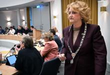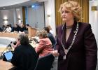30-3-2026, Nederland, Gorinchem Raadsvergadering met stemming over herstemming gemeenteraadsverkiezingen. Er zou gefraudeerd zijn met volmachtstemmen. Burgemeester Melissant-Briene tijdens de vergadering. (niet voor Trouw, Parool, AD en NRC)