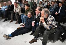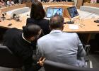 30-3-2026, Nederland, Gorinchem Raadsvergadering met stemming over herstemming gemeenteraadsverkiezingen. Er zou gefraudeerd zijn met volmachtstemmen. Raadsleden tijdens de vergadering in een onderonsje. (niet voor Trouw, Parool, AD en NRC)