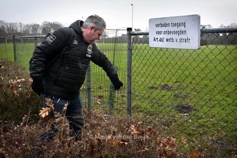 Wilco Polinder bezig met zijn project Nederlandse Velden. Hij fotografeert en documenteert alle voetbalvelden en tribunes in Nederland.