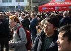 24-3-2026, Nederland, Veldhoven Protestactie werknemers chipmachinefabrikant ASML tegen geplande ontslagen. Na het protest buiten de poort gaan de werknemers weer terug naar hun werk. (niet voor Trouw, Parool, AD en NRC)