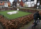 24-3-2026, Nederland, Oisterwijk De gemeente heeft betonblokken geplaatst om te voorkomen dat kinderen er nog met een bal spelen. De maatregel is genomen omdat de kinderen teveel lawaai maken. (niet voor Trouw, Parool, AD en NRC)
