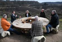 23-3-2026, Nederland, Rheden Minister Jaimi van Essen van Landbouw, Visserij, Voedselzekerheid en Natuur wordt rondgeleid op de Veluwezoom. Onderweg spreekt hij met betrokkenen over natuurbeheer en natuurherstel aan de Natuurtafel die in het landschap staat. (niet voor Trouw, Parool, AD en NRC)