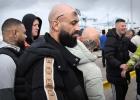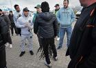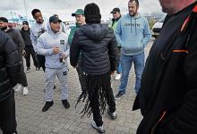 8-10-2025, Nederland, Rotterdam Sjorders van de sjordersbedrijven Matrans en ILS staken voor een beter loon in de Rotterdamse haven. foto Marcel van den Bergh (niet voor Trouw, Parool, AD en NRC)