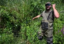 24-7-2025, Nederland, Kekerdom beversporen in de Millingerwaard De geinterviewde toont een ingang van een bevergang. foto Marcel van den Bergh (niet voor Trouw, Parool, AD en NRC)