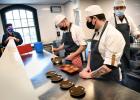 1-3-2021, Nederland, Breda horeca opleiding MBO De Rooi Pannen Leerlingen aan het werk in de keuken van het onderwijshotel tijdens coronacrisis. coronavirus; virus; corona; pandemie; ziekte; RIVM; sociale onthouding; coronacrisis; COVID-19; anderhalvemetersamenleving; anderhalvemetermaatschappij; social distance; social distancing; MBO; horeca; onderwijshotel; onderwijs; school; Middelbaar Beroepsonderwijs; leerlingen; leerling; kok; keuken; foto Marcel van den Bergh