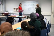 19-11-2025, Nederland, Biddinghuizen tijdelijk aanmeldcentrum AZC op evenemententerrein ter ontlasting van Ter Apel Nederlandse les voor vrouwen. foto Marcel van den Bergh (niet voor Trouw, Parool, AD en NRC)