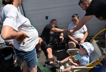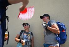 14-6-2025, Duitsland, Hanau kastenlauf De kastenlauf is een hardloopwedstrijd over 5 kilometer waarbij 2 deelnemers samen een krat bier tillen. De inhoud hiervan wordt gedronken gedurende de race en moet op zijn voordat de deelnemers over de finish gaan. Een deelnemer krijgt na de finish de nodige verkoeling. foto Marcel van den Bergh (niet voor Trouw, Parool, AD en NRC)