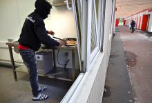 19-11-2025, Nederland, Biddinghuizen tijdelijk aanmeldcentrum AZC op evenemententerrein ter ontlasting van Ter Apel Een jongen maakt zijn eten klaar. foto Marcel van den Bergh (niet voor Trouw, Parool, AD en NRC)