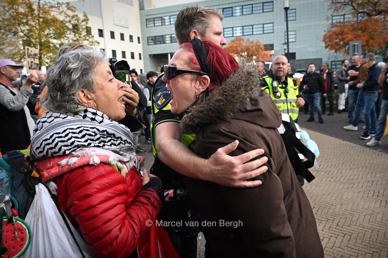 30-9-2025, Nederland, Amersfoort Bij een protest tegen komst AZC (rechts) ontstaat een tegenprotest door de groepering Antifa (links). De gemoederen onderling liepen hoog op. foto Marcel van den Bergh (niet voor Trouw, Parool, AD en NRC)