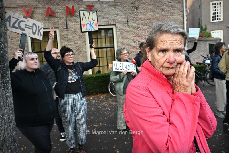 30-9-2025, Nederland, Amersfoort Bij een protest tegen komst AZC ontstaat een tegenprotest aan de overkant van de straat. foto Marcel van den Bergh (niet voor Trouw, Parool, AD en NRC)
