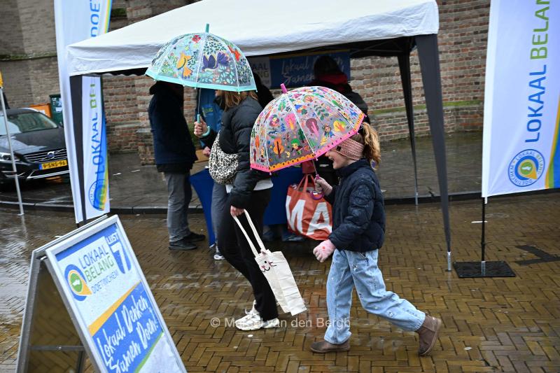 Diverse partijen flyeren in het stadscentrum voor de gemeenteraadsverkiezingen.