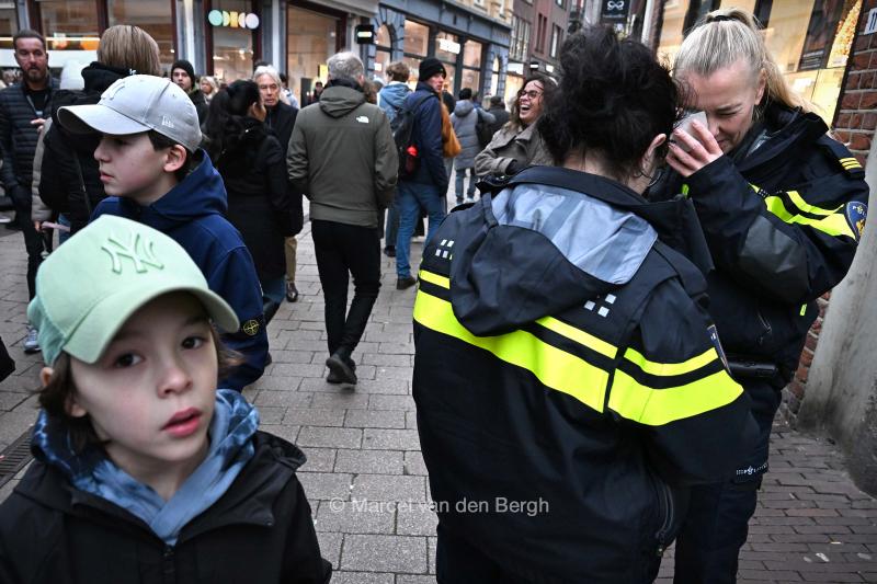 14-12-2025, Nederland, Arnhem Politie controleert op een drukke dag in de binnenstad. Een identiteitskaart wordt nauwkeurig met een lope bestudeert. Uiteindelijk blijkt hij vals. foto Marcel van den Bergh (niet voor Trouw, Parool, AD en NRC)
