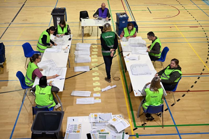 19-3-2026, Nederland, Doetinchem Hertellen stemmen gemeenteraadsverkiezingen in sporthal. (niet voor Trouw, Parool, AD en NRC)