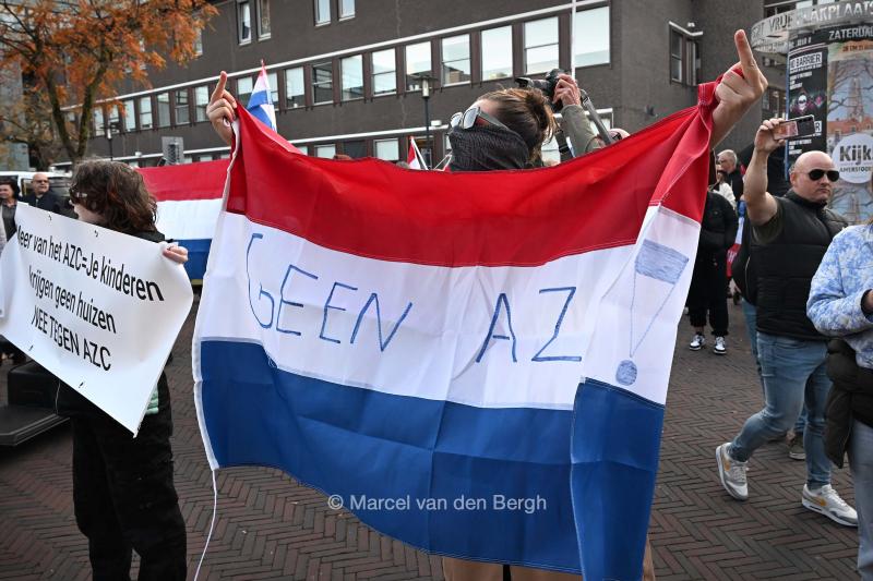 30-9-2025, Nederland, Amersfoort protest tegen komst AZC Demonstranten roepen leuzen op het stadhuisplein. foto Marcel van den Bergh (niet voor Trouw, Parool, AD en NRC)