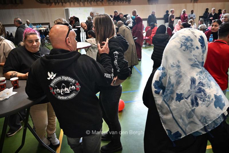 Enkele leden van de rechtse groepering Freedom Fighters Netherlands die tegen de hoeveelheid AZC's is, doen ook een bezoek aan het AZC.