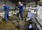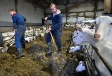 8-12-2025, Nederland, Horssen geitenhouderij Geitenhouder Niels van Middelkoop (r) en zijn stagiaire voeren de geiten. foto Marcel van den Bergh (niet voor Trouw, Parool, AD en NRC)