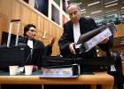 9-12-2025, Nederland, Den Bosch strafzaak rond het Stint-ongeluk begonnen Advocaten Geert-Jan Knoops en Carry Knoops-Hamburger maken zich op voor de zitting. foto Marcel van den Bergh (niet voor Trouw, Parool, AD en NRC)