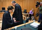 9-12-2025, Nederland, Den Bosch strafzaak rond het Stint-ongeluk begonnen Advocaten Geert-Jan Knoops en Carry Knoops-Hamburger maken zich op voor de zitting. (de enigszins herkenbare man rechtsonder is een journalist) foto Marcel van den Bergh (niet voor Trouw, Parool, AD en NRC)