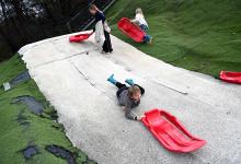 klimaatverandering; opwarming aarde; warmte; warmterecord; winter; record; klimaat; kunstskibaan; skibaan; borstelbaan; skien; skiles; kind; kinderen; wintersport; sleeen; slee; jas