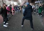 19-1-2026, Nederland, Amersfoort wandelen op Blue Monday ten behoeve van de mentale gezondheid Diverse bewegelijke activiteiten zijn georganiseerd door verschillende instanties. Voor aanvang van de georganiseerde wandeling worden de spieren losgemaakt. foto Marcel van den Bergh (niet voor Trouw, Parool, AD en NRC)