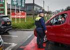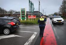 10-3-2026, Belgie, Essen Nederlanders tanken massaal in Belgie vanwege de hoge brandstofprijzen veroorzaakt door de oorlog in het Midden-Oosten. De politie sommeert Nederlanders door te rijden verder Belgie in omdat het bij het tankstation te druk is. (niet voor Trouw, Parool, AD en NRC)