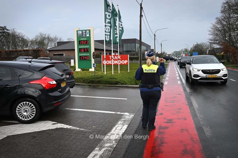 De politie sommeert Nederlanders door te rijden verder Belgie in omdat het bij het tankstation te druk is.