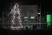 VRIJ 12-12-2025, Nederland, Wijchen "kerstgezelligheid" Een woning in aanbouw als kerstboom verlicht foto Marcel van den Bergh (niet voor Trouw, Parool, AD en NRC)