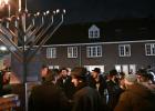 16-12-2025, Nederland, Den Bosch Joden vieren Chanoeka voor de oude synagoge. De rabbijn steekt de kaarsen aan. foto Marcel van den Bergh (niet voor Trouw, Parool, AD en NRC)