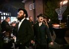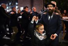 16-12-2025, Nederland, Den Bosch Joden vieren Chanoeka voor de oude synagoge. De rabbijn gaat voor in de polonaise. foto Marcel van den Bergh (niet voor Trouw, Parool, AD en NRC)