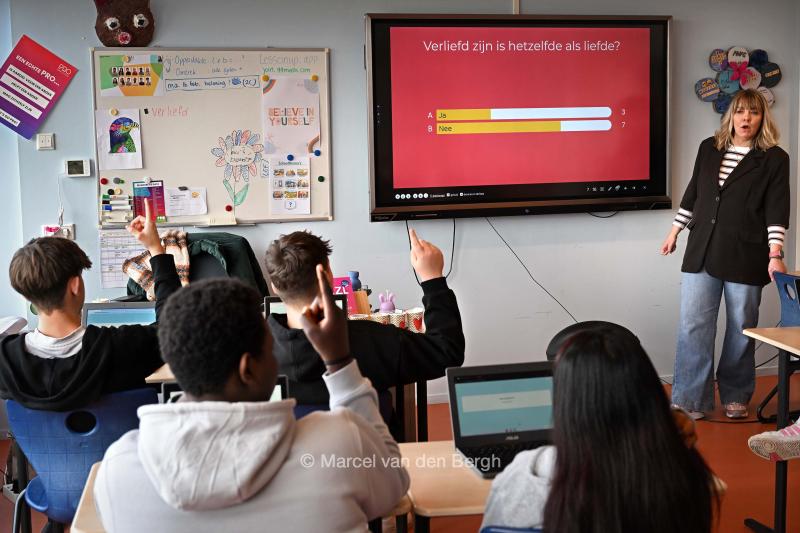 10-2-2026, Nederland, Drachten Praktijkschool PRO Drachten doet mee aan De Week van de Liefde. Kinderen van de 4e klas krijgen les over relaties en seksualiteit. (niet voor Trouw, Parool, AD en NRC)