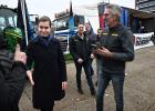 12-12-2025, Nederland, Den Bosch Boeren protesteren bij het provinciehuis tegen de stikstofplannen. Forum voor Democratie lijsttrekker Lidewij de Vos was 1 van de sprekers. Een boer steekt zijn duim op en Lidewij wil hem de hand schudden. foto Marcel van den Bergh (niet voor Trouw, Parool, AD en NRC)