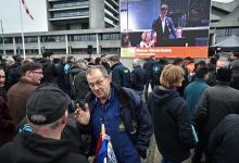 12-12-2025, Nederland, Den Bosch Boeren protesteren bij het provinciehuis tegen de stikstofplannen. Forum voor Democratie lijsttrekker Lidewij de Vos was 1 van de sprekers. Een boer wil een selfie met haar maken. foto Marcel van den Bergh (niet voor Trouw, Parool, AD en NRC)