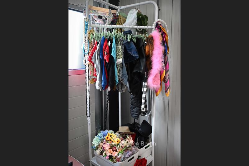 VRIJ 10-12-2025, Nederland, Oud-Beijerland Hondenfotograaf Kimberley van Motherpuppers Studio aan het werk. Kleding voor honden hangen aan het rek. foto Marcel van den Bergh (niet voor Trouw, Parool, AD en NRC)