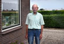 27-8-2025, Nederland, Hellevoetsluis Legale wietteelt bedrijf Canadelaar Lein Brasser voor zijn woning heeft last van de stank. Het bedrijf ligt rechts in de achtergrond. foto Marcel van den Bergh (niet voor Trouw, Parool, AD en NRC)