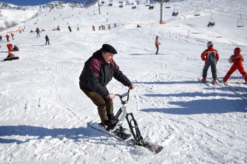 skien; ski; wintersport; skivakantie; vakantie; sneeuw; winter; sport; Alpen; bergen; reis; reizen; kou; koude; ontspanning; buitenland; skifiets; sneeuwfiets; sneeuwpret; inventief; inventiviteit; nieuw; uitvinding; uitvinden;