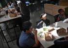 25-8-2025, Nederland, Rotterdam Zomerschool po-vo, op Melanchton Kralingen, bedoeld om kinderen voor te bereiden op de overgang van de basis- naar de middelbare school. Eerste jaars aan de lunch. Ze mogen geen mobieltjes in de pauze gebruiken. foto Marcel van den Bergh (niet voor Trouw, Parool, AD en NRC)