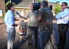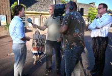 25-8-2025, Nederland, Amsterdam Protest van bewoners van Tuindorp Oostzaan komen bijeen voor protest tegen de overlast van kunstmestfabriek ICL. In het buurthuis gaan ze in gesprek met vertegenwoordigers van de fabriek oa met locatiedirecteur Erik Wegman en ICL-directeur Kevin Brugge. Kevin Brugge staat buiten de pers te woord. foto Marcel van den Bergh (niet voor Trouw, Parool, AD en NRC)