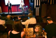 25-8-2025, Nederland, Amsterdam Protest van bewoners van Tuindorp Oostzaan komen bijeen voor protest tegen de overlast van kunstmestfabriek ICL. In het buurthuis gaan ze in gesprek met vertegenwoordigers van de fabriek oa met locatiedirecteur Erik Wegman en ICL-directeur Kevin Brugge. Bezorgde burgers in de zaal. foto Marcel van den Bergh (niet voor Trouw, Parool, AD en NRC)