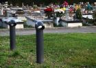 4-12-2025, Nederland, Dordrecht Begraafplaats Essenhof opende zonder toestemming kisten in keldergraven voor experimenten. Op de foto het veld met familiegraven waar de experimenten hebben plaatsgevonden. Beluchtingsbuizen die onder de graven doorlopen komen boven de grond uit. foto Marcel van den Bergh (niet voor Trouw, Parool, AD en NRC)