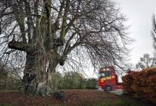 1-12-2025, Nederland, Sambeek De dikste en oudste lindeboom van het land gaat meer ruimte krijgen. Een langslopende doorgaande weg gaat worden verlegd zodat de invloed van het verkeer op de boom beperkt gaat worden.. foto Marcel van den Bergh (niet voor Trouw, Parool, AD en NRC)
