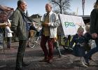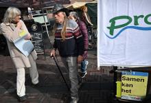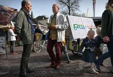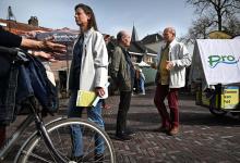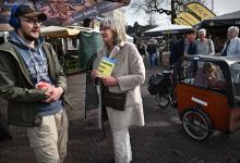 6-3-2026, Nederland, Olst gemeenteraadsverkiezingen De partij Pro Olst-Wijhe flyert in het centrum op de markt voor de gemeenteraadsverkiezingen. (niet voor Trouw, Parool, AD en NRC)