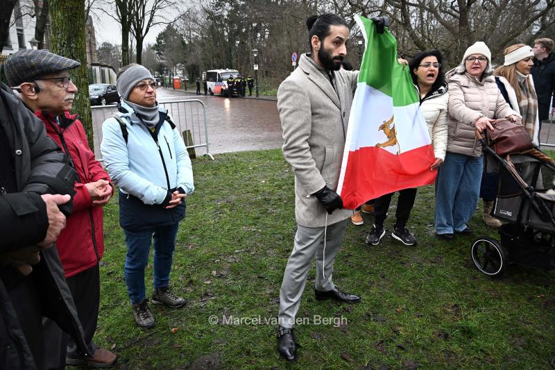 13-1-2026, Nederland, Den Haag Protest bij Iraanse ambassade tegen het geweld in Iran. midden VVD-Kamerlid Ulyssee Ellian. foto Marcel van den Bergh (niet voor Trouw, Parool, AD en NRC)