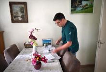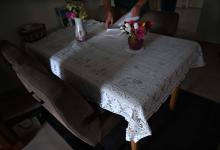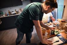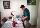 28-10-2025, Nederland, Etten-leur Wijkzorg aan het werk in de wijk. De client stoot toevallig zijn koffie om. foto Marcel van den Bergh (niet voor Trouw, Parool, AD en NRC)