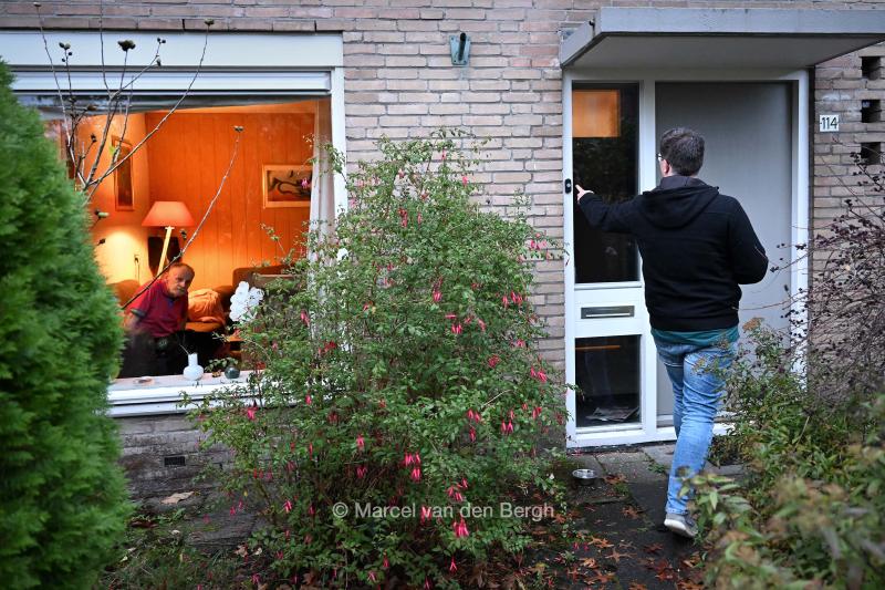 28-10-2025, Nederland, Etten-leur Wijkzorg aan het werk in de wijk. Hij belt aan bij client. foto Marcel van den Bergh (niet voor Trouw, Parool, AD en NRC)