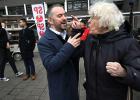 28-2-2026, Nederland, Rotterdam De SP probeert bij de Afrikaander Markt kiezers te interesseren voor de gemeenteraadsverkiezingen. Terwijl Jimmy Dijk in de achtergrond vooral zijn eigen mensen toespreekt toont de gemiddelde marktbezoeker weinig interesse. (niet voor Trouw, Parool, AD en NRC)